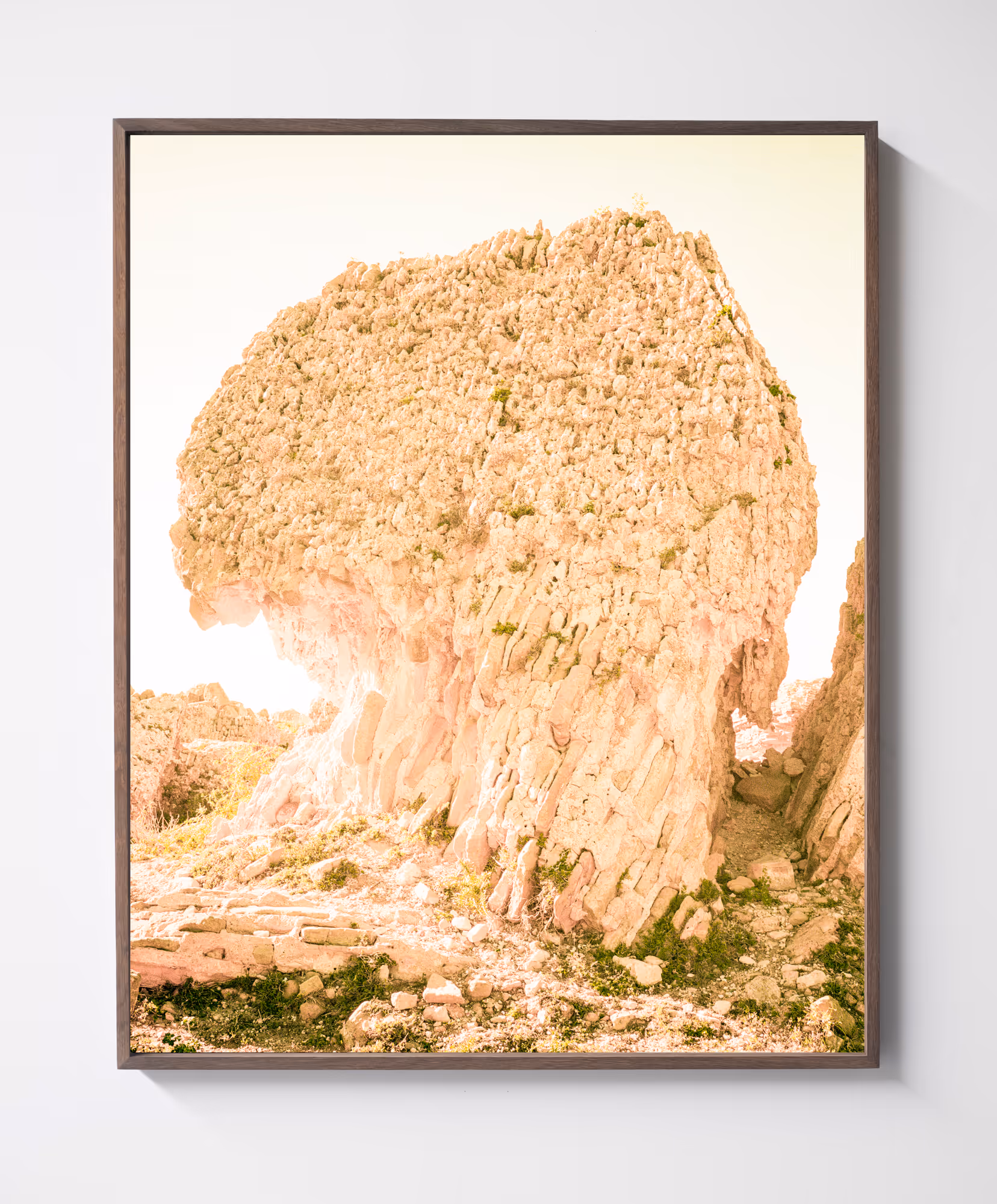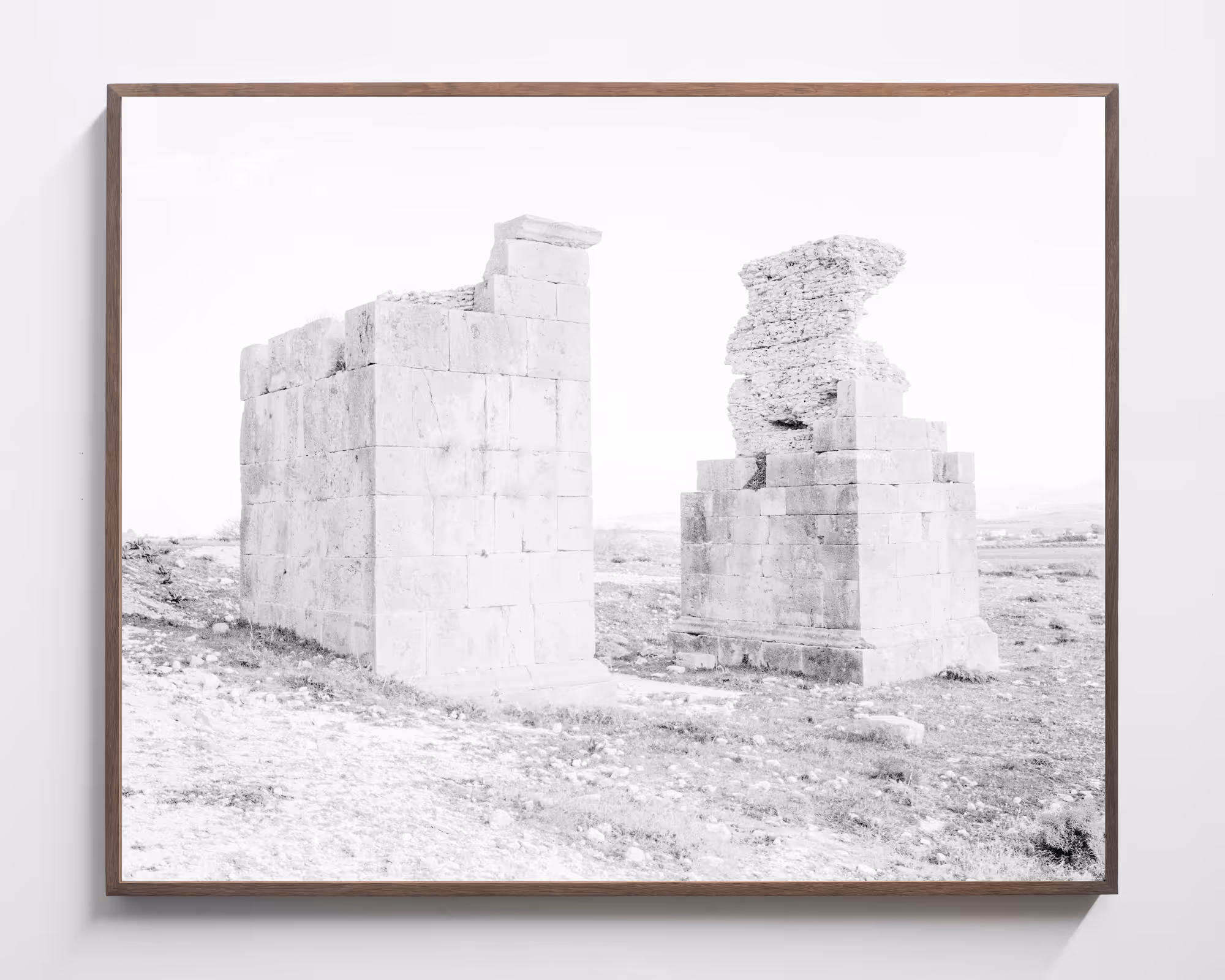In this new exhibition, Sybren Vanoverberghe reveals a new series of photographs that were taken in the evocative Moroccan desert. The series of images show us a parade of artefacts and hideouts, isolated and serenely present within the vast landscape. But also depictions of ancient engravings and other faded traces from bygone times like a dead dromedary, floating in a state between fossil and cadaver, drowned under the smouldering heat of a blazing sun. Ruins embrace the desert vegetation and improvised human structures turn into shelters in this merciless landscape.