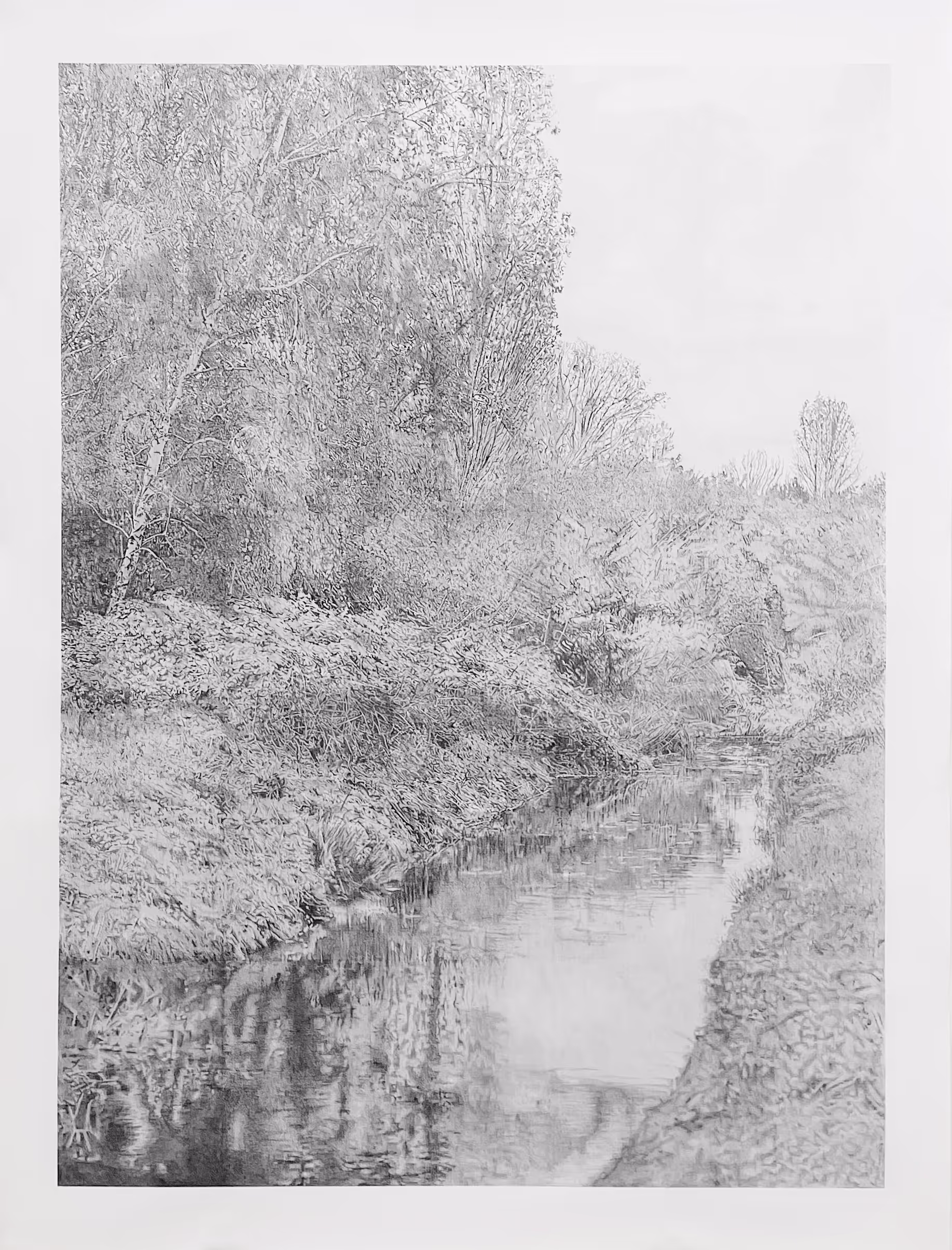 A rumour of silver and toxicity haunts this investigation of a chemically contaminated East German reservoir nicknamed Silbersee (Silver Lake), near the Wolfen film factory. For years, photographic waste was discharged into the lake - so much so that one could develop photographs directly in its waters. In this project we use photography, video and graphite drawing. The interplay of these mediums raise thoughts about the properties of photography, such as the moment a picture is taken in relation to the time it takes to draw, the mechanical versus the handmade, the unpredictability of the aged photographic material in relation to conscious decisions in drawing, the precision in factory production versus the unpredictability and consequences of emissions in the area.