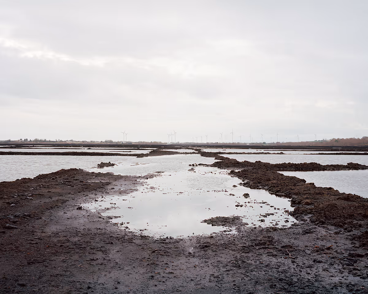 The work explores the de-industrialisation of the bog; where large-scale peat extraction has ceased, alongside smaller scale turf cutting by communities; still harvesting turf for domestic use. More recent explorations include resurgent landscapes where bogs are actively being restored by communities and Bord na Móna as well as the construction of new wind and solar farms on peatlands.