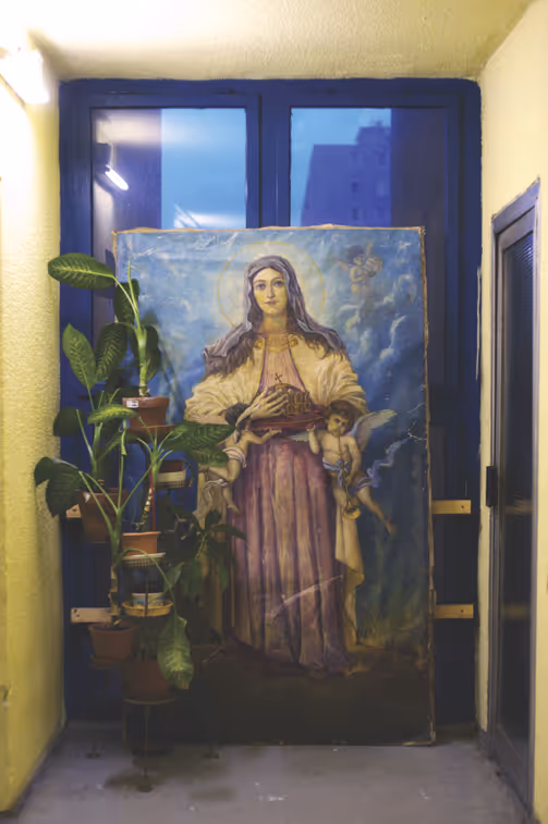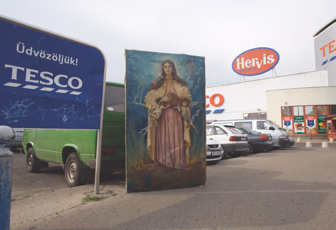 I’ve been exploring the borderlines between the public and the private space. I used an ordained altar picture of Virgin Mary which is my family’s property. When I was a child, it was hanged in our room but later we moved it up to the attic and we moved from that house. Now I went back there and brought down the painting and tried to find out where does it really belong and how does it behave in certain situations.