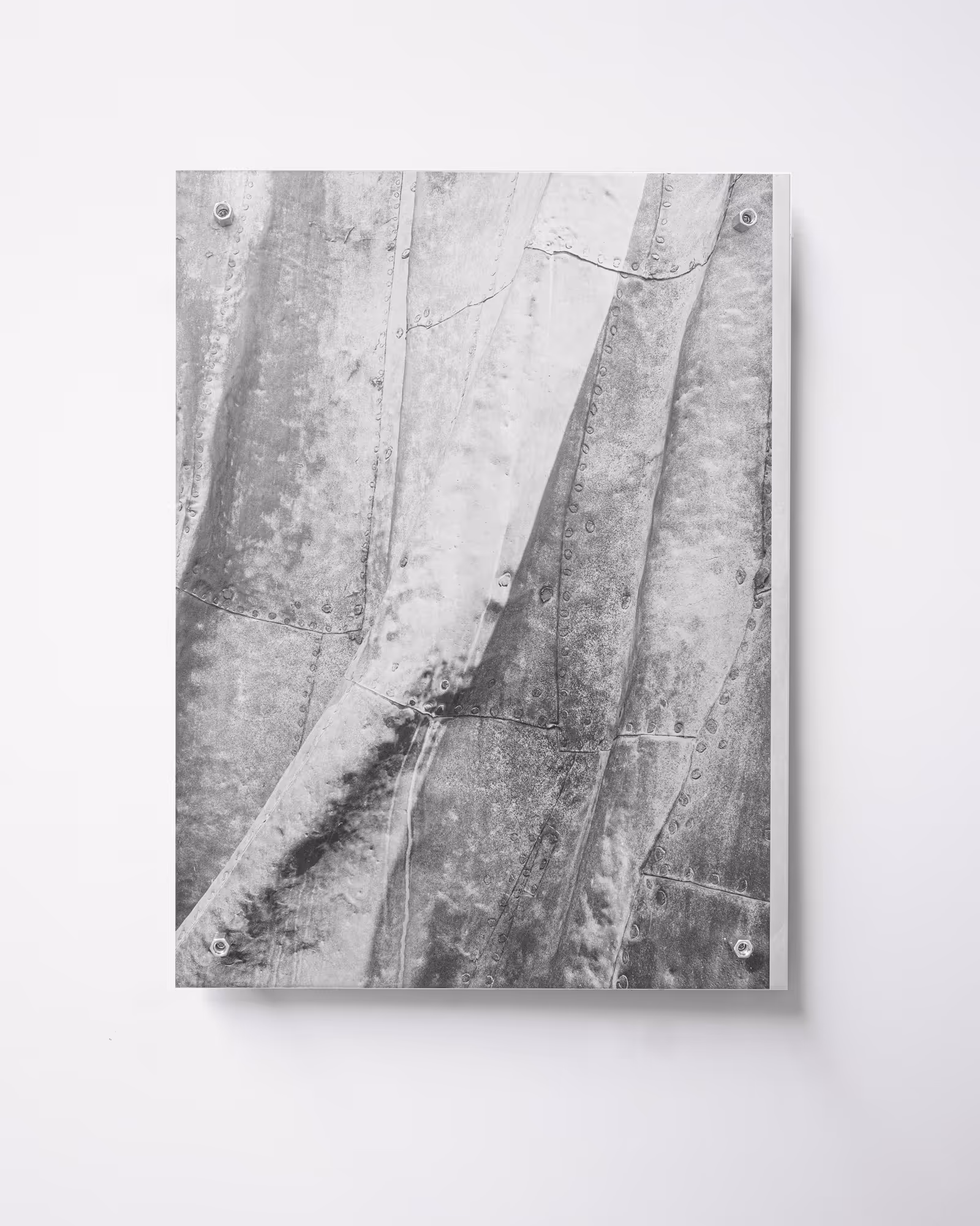 The work is a continuation in Vanoverberghe’s research to the material in which he presents his photographs. The visual atmosphere of the works constantly change due to the light that is captured or reflected by the brass material.