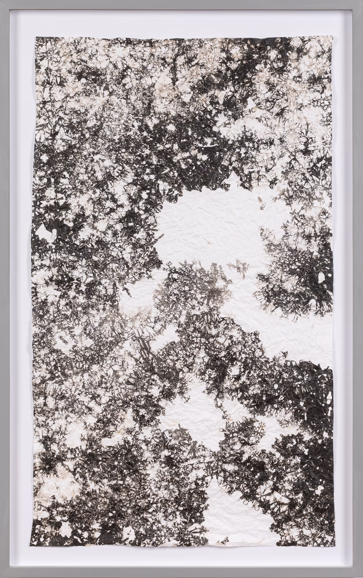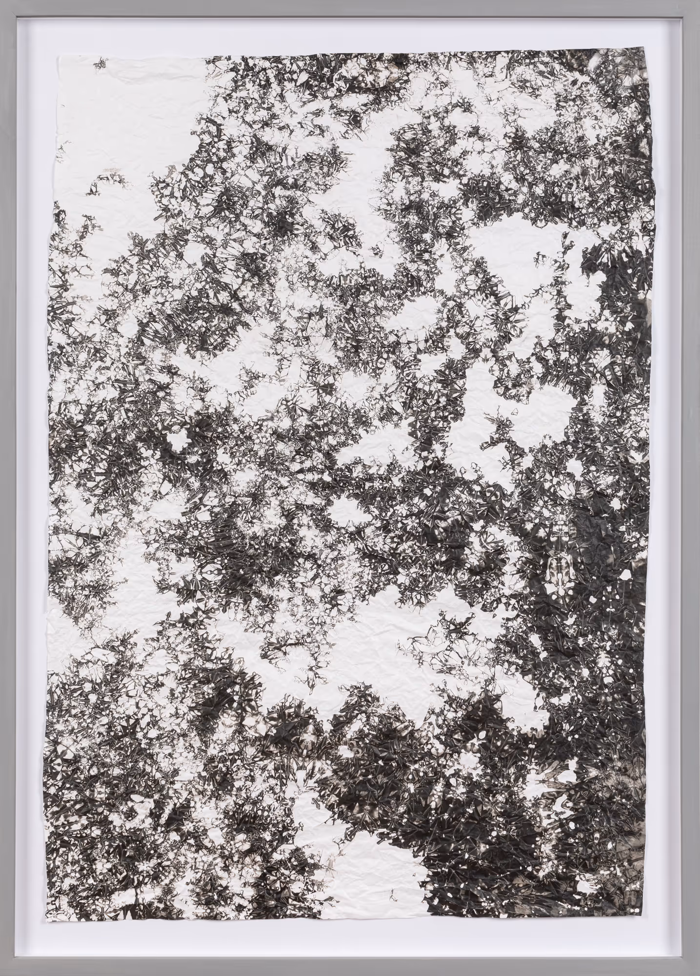 The painstaking, experimental attitude that characterizes the creative method of the artist is aimed at discovering and exposing the most essential inner structure of the medium. The exhibition titled Ag tackles questions related to the medium as well as to the relationship between creation and education. The teacher presenting the trade, the knowledge, and the technical information is browsing the used materials forsaken by the students. Thus, the basic motifs of the exhibition are made up of items that had been discarded, left behind by the students in the workshop and the photo lab: used fixer, test strips, and photo paper provide the basis for the artworks.