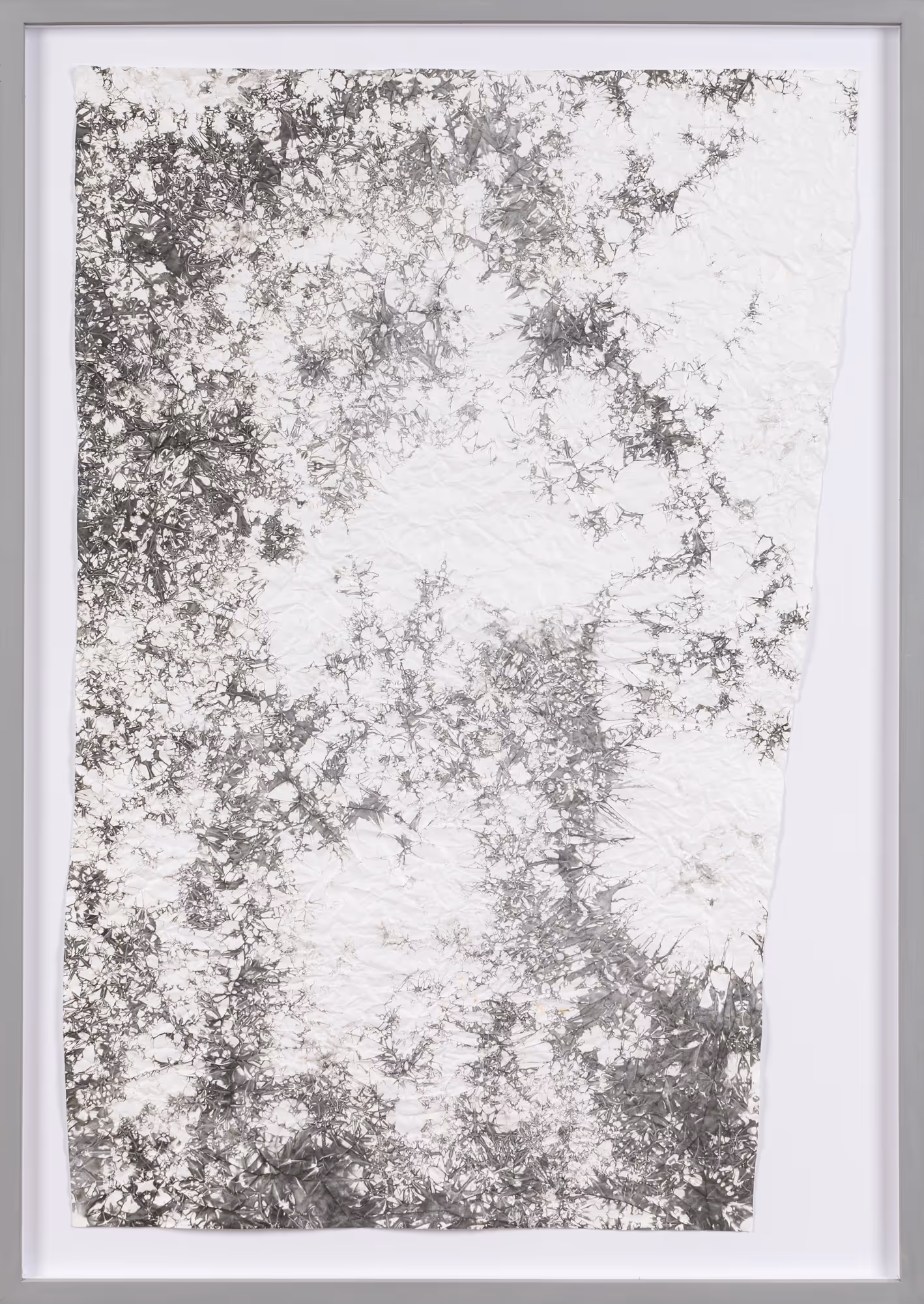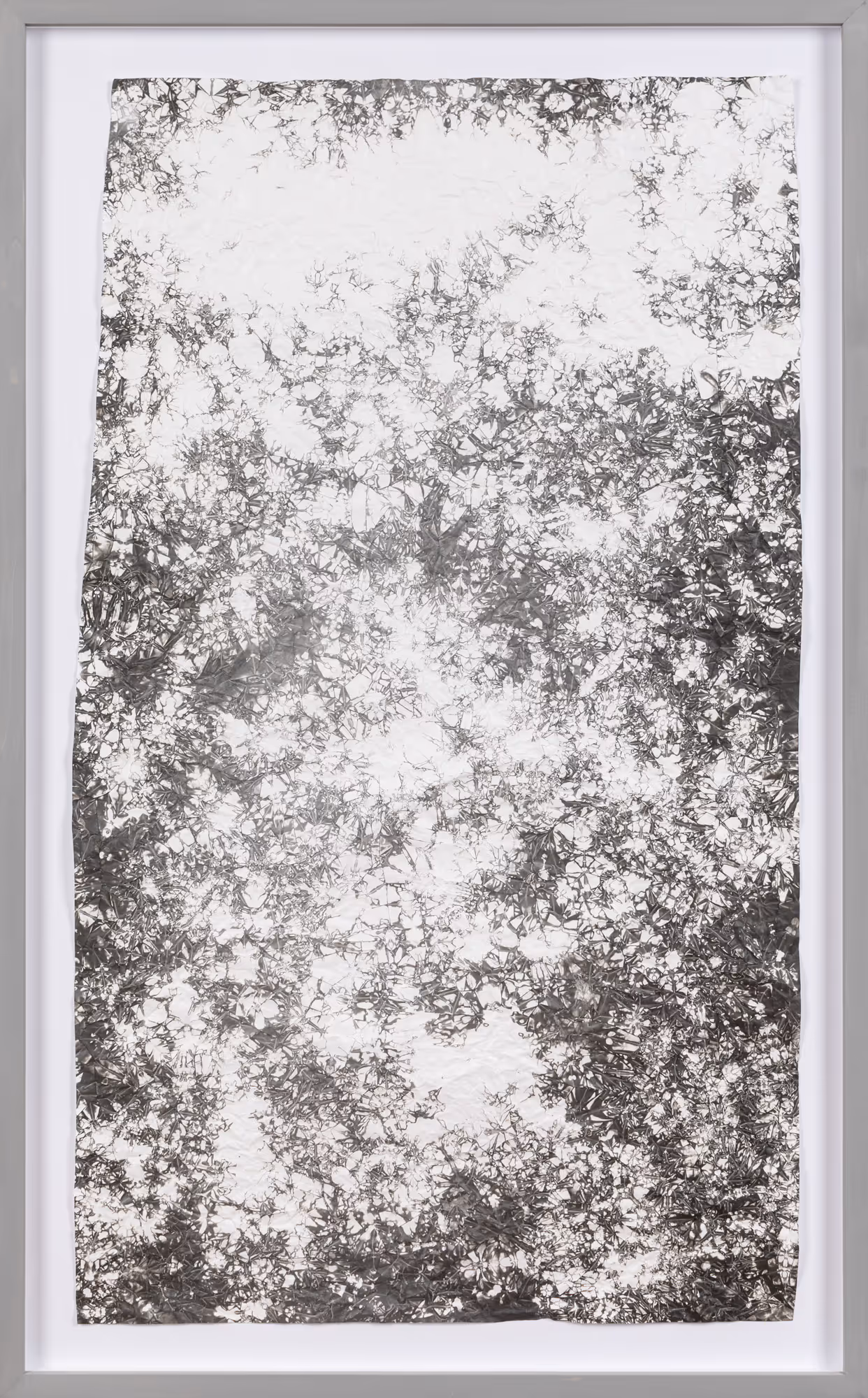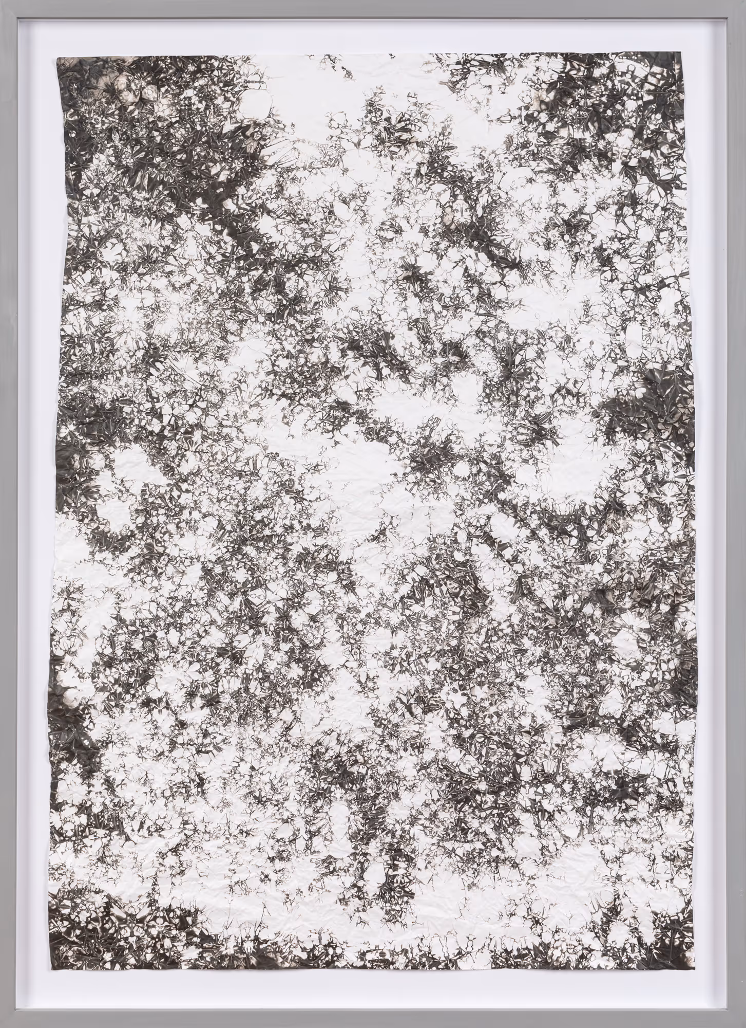 Máté Dobokay’s photographic experimentation does not result in photographic images. The artworks evoke the processes of the secret and intricate science of alchemy, looking for the philosopher’s stone suitable for turning base metals into precious metals, achieving immortality, and healing physical anguish. Dobokay creates unique and unreproducible, abstract, picturesque images and objects, delineating all the different shades of the shiny grey of silver on the various media.
