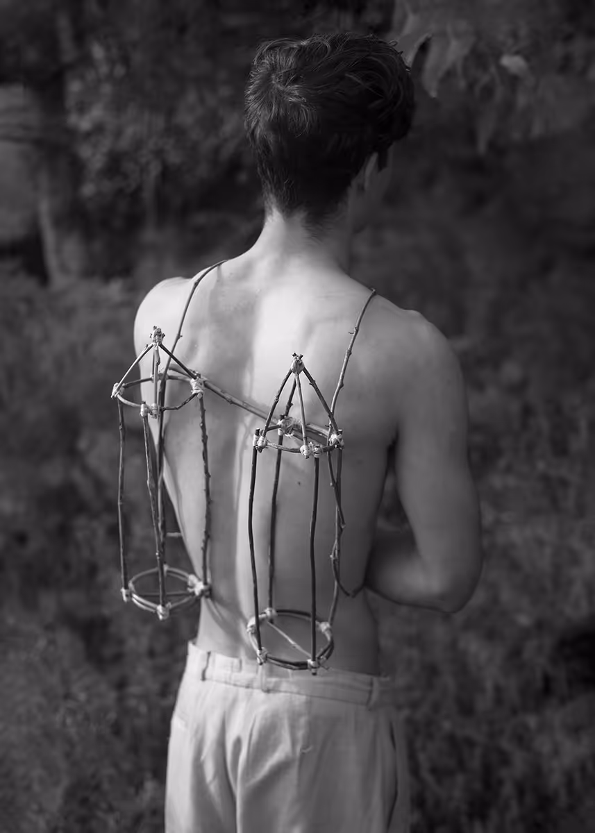Non technological devices are composite tools made from gleaned natural elements, assembled to mimic the technological devices that populate our daily lives. Between rudimentary productions and science-fiction creations, these objects are as much prolongations of bodies as they are hindrances. Together they create a fictional universe that functions as a mirror held up to our fantasies of the future.