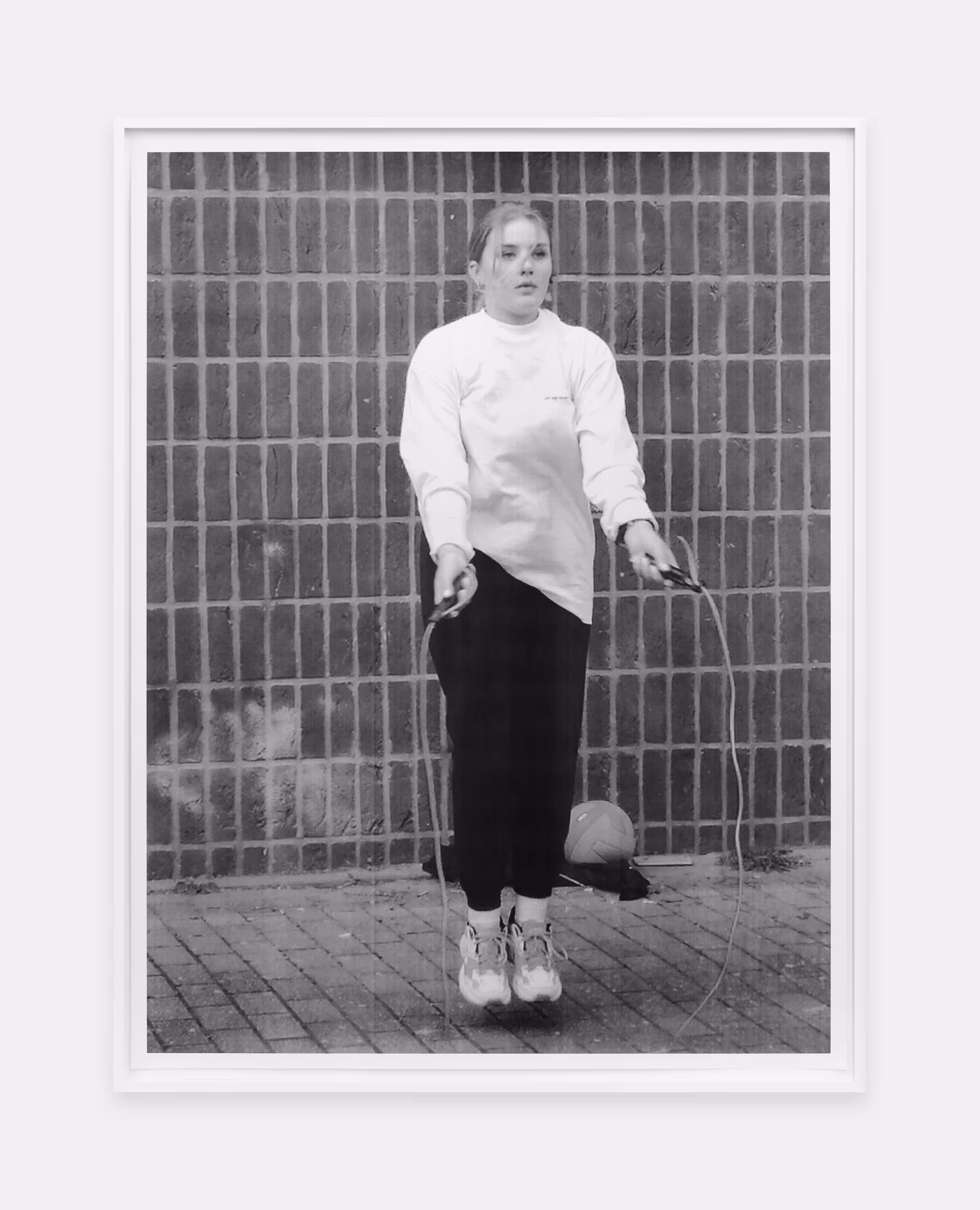 Among his recent works, one series stands out: a film sequence depicting a young girl jumping rope in front of a brick wall. In ten images, the series captures the complete rotation of the rope around the body and the moments of suspension in space, including a moment of stumbling. This is the only human presence in Bertrand Cavalier’s work, a sensitive and necessary breath of air as a counterpoint to an angular, minimalist universe. His latest book, Permanent Concern, could thus evoke both the transience of this movement, the constant risk of failure, and more broadly, the fragility of the human condition in the contemporary Western environment. Structured by the page-by-page scrolling of his alphabet of visual signs, the book reveals snapshots of skipping rope at regular intervals, punctuated by sequences of blank pages that introduce a breath, a temporal silence and a meditative pause into the reading experience.