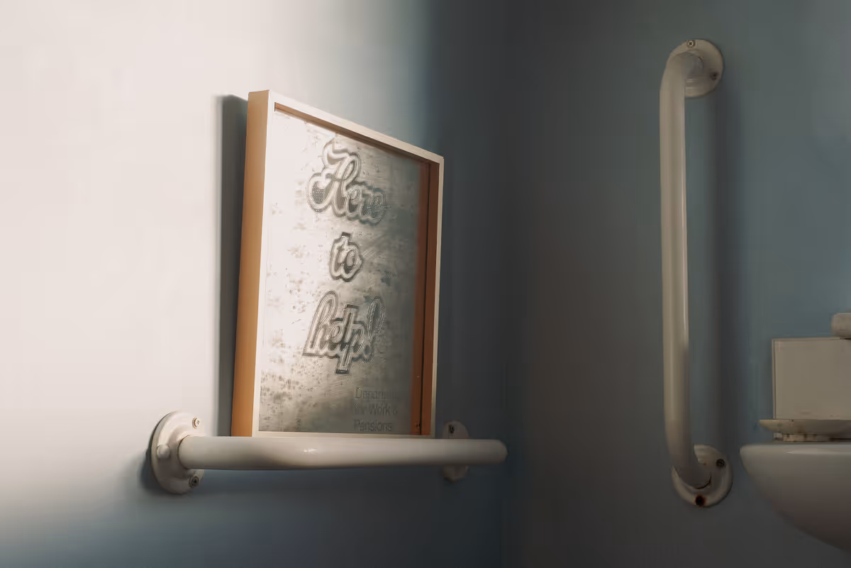 Does your condition affect your washing and bathing? Does your condition affect you using the toilet or managing incontinence? These are just two of the questions UK citizens are asked when applying for aid from the Welfare State, typically posed by strangers. Jack Moyse finds the process intrusive and demeaning and has fought back with his work, mapping the relevant scenarios with his own body, then shooting at a distance. Peeping through doorways or watching long-distance through trees, his imagery suggests the surveillance to which he and others are subjected; using images to raise awareness, he also suggests the camera as a liberatory tool. Moyse’s staged still lifes materialise the rhetoric that surrounds disability, meanwhile, and his layered artworks the trappings of bureaucracy.
