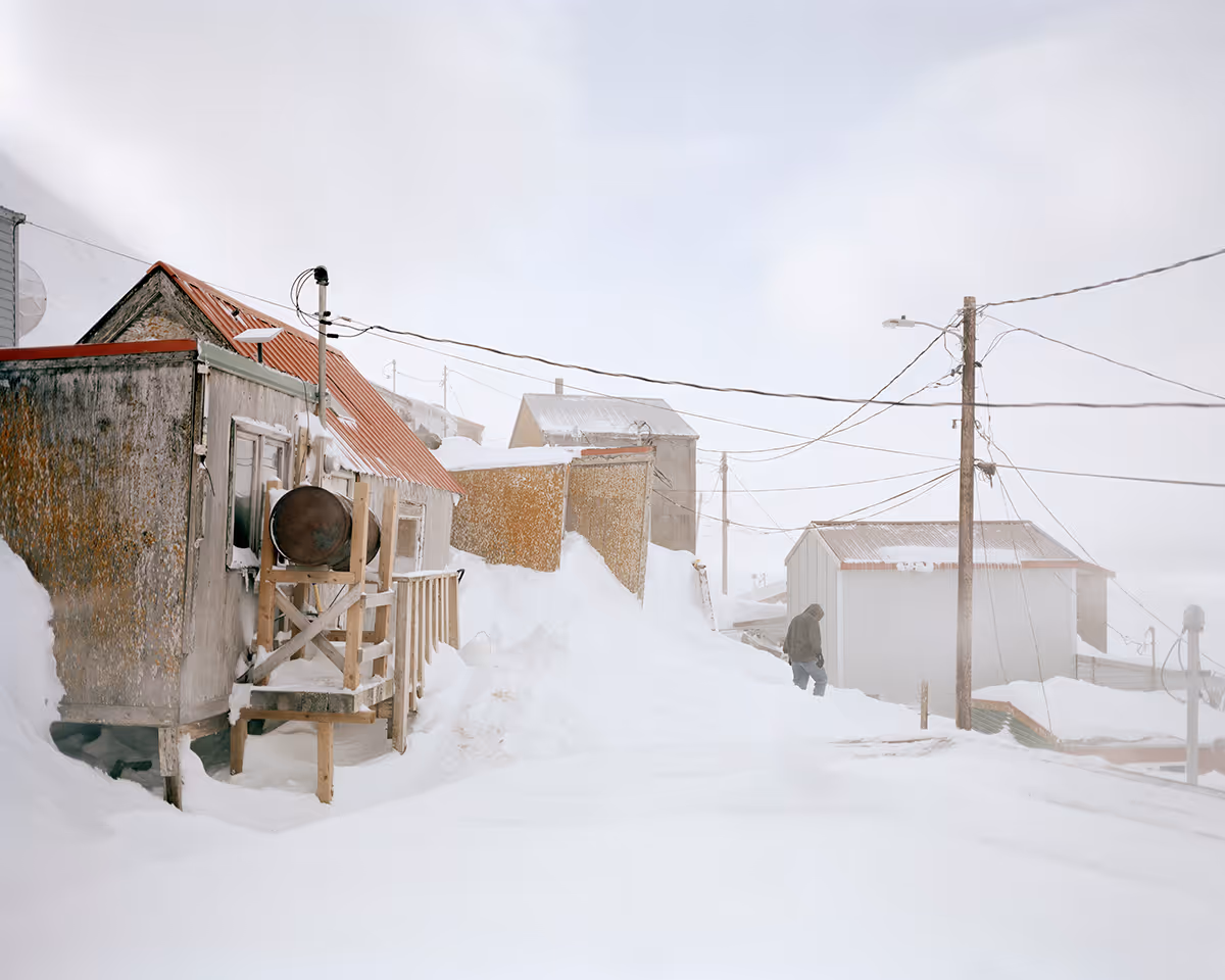 The images of Tomorrow's Gone touch our limits. Beneath the stillness, the calm and the serenity, we sense the deadly violence of the effects of global warming, armed conflicts, the frantic race of capitalism devouring languages and civilisations to the bone. The snow-covered houses seem to be holding their breath in anticipation of a denouement, whatever it may be. Under these conditions, it is impossible to turn our backs on the mysteries that accompany the search for our own place, on the melancholy of our finitude. Yet confronting it is a necessity, both collective and intimate, the only way to design new beginnings.