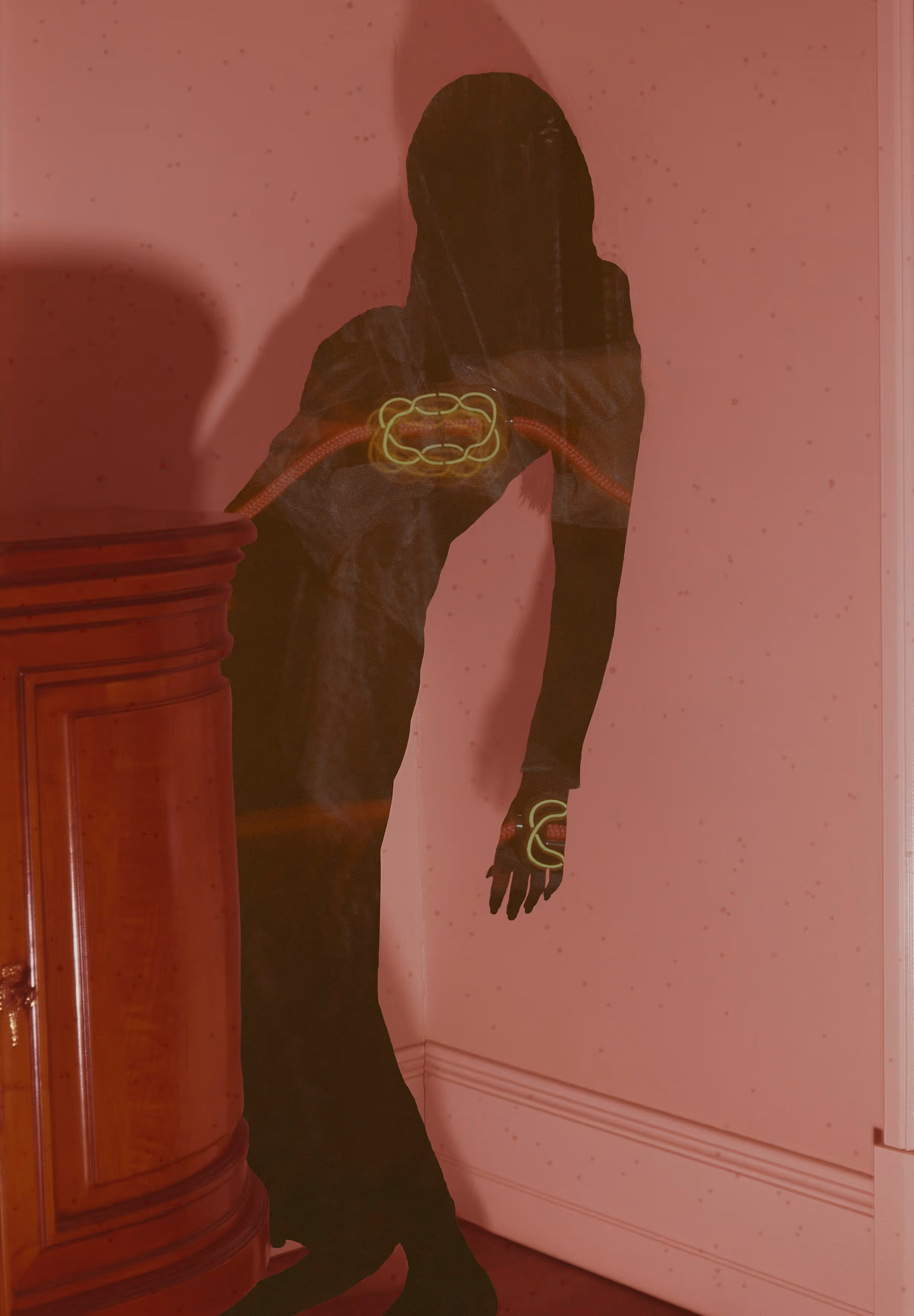 The artwork, Techno-Spectre, metaphorically refers to the digital footprints left in the virtual world. These traces range from insignificant, like saved website data, to more visible, like social media posts, which can continue to haunt our online personas long after they’re created. Our digital presence, from archived emails to online interactions, spreads across the web's vast electrical spectrum, creating a substantial ghostly presence. The ghost, a recurring motif in the author’s artistic activity, embodies the continuous practice of capturing and depicting the elusive in photography.