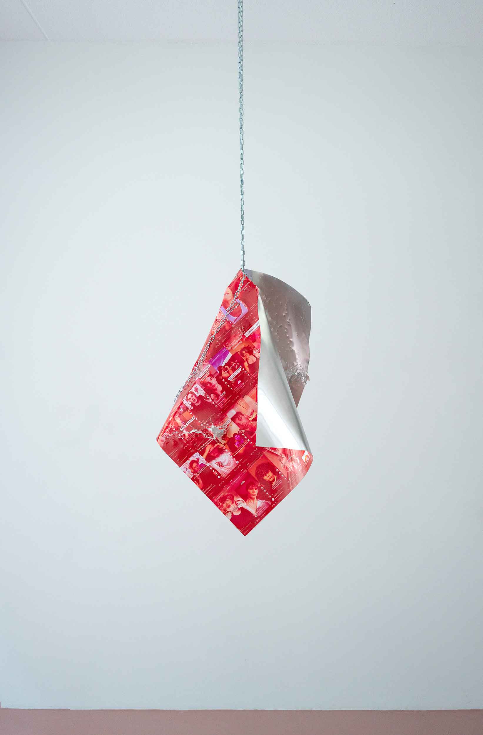 Rohr shows me an image of a man with enhanced, purple, smashed cheeks. By printing a collage of images collected from TikTok of the “bonesmashing”-trend on aluminum, hammering the aluminum from the back, and by adding screws, the man literally is turned into a ‘body under construction’. Another image looks like a Batman play figure, dripping in synthetic red, a nod to the Red Pill. Rohr is also creating a big print on aluminum, featuring many screenshots of the very violent trend of looksmaxxing, thus reflecting the fantasies and optimizing nature of manosphere ideals.